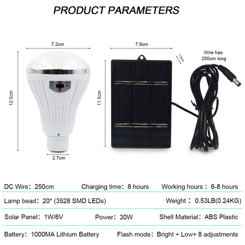 💡DON'T CONSUME ELECTRICITY — solar light bulbs using energy-saving LED light source, Powered by DC 6V solar panels, Charging 8 hours to complete, Use work 6 ~ 8 hours. Built-in 1000mAh rechargeable battery, Charge and discharge 500 times.